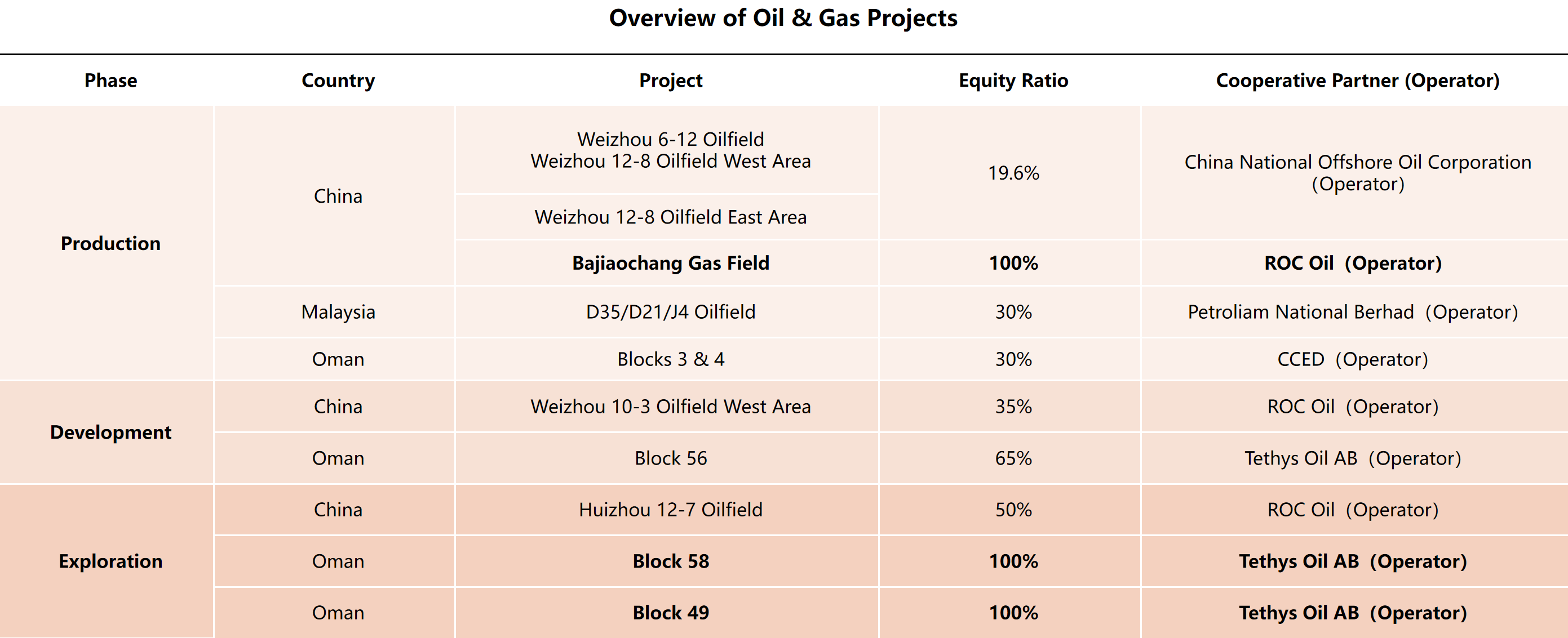 ROC is an international oil & gas company with over 20 years of experience, offering full-cycle capabilities that include exploration, appraisal, development, and production delivery.Its key projects are in Sichuan (China), the South China Sea (Beibu Gulf and Pearl River Mouth), Malaysia, and Oman, with average daily production exceeding 35,000 BOE.